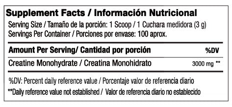 CREATINE TIME contiene únicamente un ingrediente: creatina monohidratada micronizada, reconocida mundialmente como la forma más efectiva y estudiada. Cada porción aporta 3 gramos de creatina pura, sin azúcar, sin sabor, sin aditivos y sin rellenos que afecten tu salud o tus resultados.